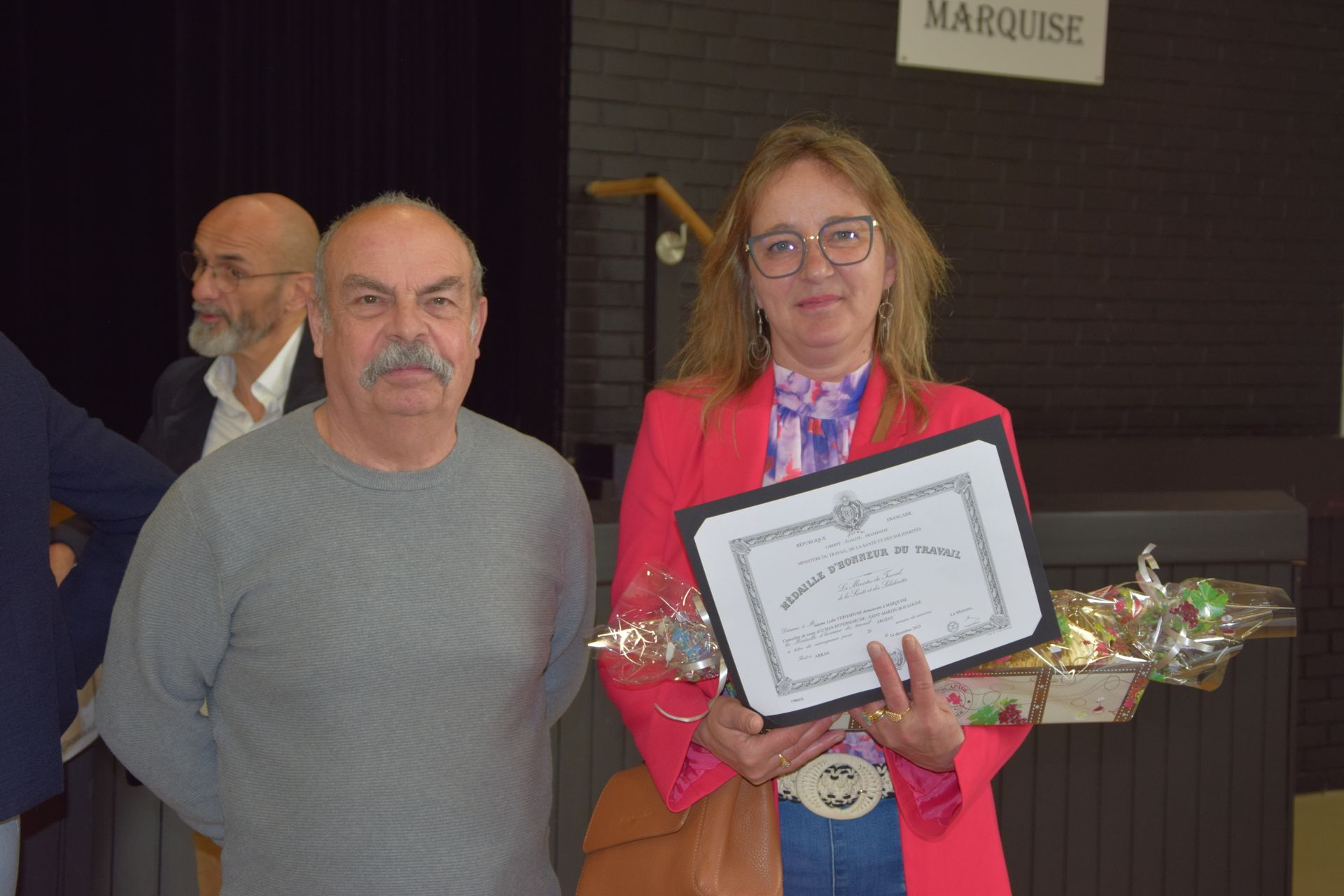 Les récipiendaires sont venus successivement récupérer leur diplôme et leur médaille en fonction de leur ancienneté dans le monde du travail : médaille d’argent (20 ans), médaille de vermeil (30 ans), médaille d’or (35 ans) et médaille grand or (40 ans).