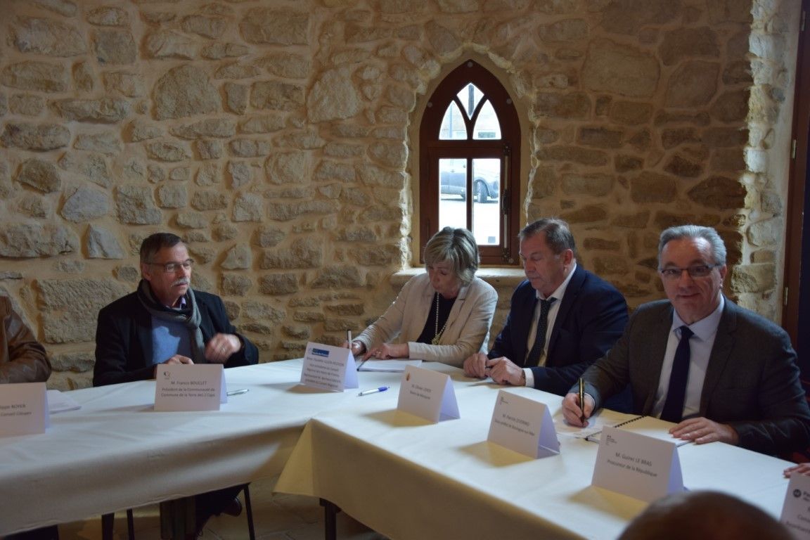Inauguration des nouveaux locaux France Service (l'Interm@de) en présence du sous-préfet, du président de la Communuté de commune de la terre des 2 Caps et de plusieurs maires de municipalités voisines.